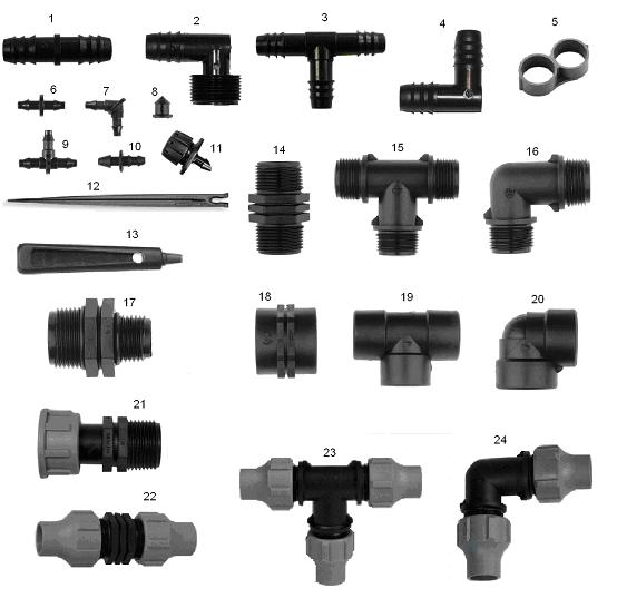 Τα υλικά συνδεσμολογίας Φις Φ16 χρησιμεύουν στην σύνδεση 2 λάστιχων Φ16. Το υλικό των φις πρέπει να είναι από ακετάλης και όχι από πολυαιθυλένιο διότι δεν θα είναι ασφαλή στις μεγάλες πιέσεις και μπορεί να αποσυνδεθεί. Η ακετάλη είναι πιο σκληρό πλαστικό υλικό και οι ακίδες του μαγκώνουν ικανοποιητικά το λάστιχο του πολυαιθυλενείου και να το κρατούν γερά. Για να σιγουρευτούμε ότι το υλικό είναι ακετάλης και όχι πολυαιθυλένειο μπορούμε να το βάλουμε μέσα σε νερό. Το πολυαιθυλένιο επιπλέει ενώ η ακετάλη ως βαρύτερο υλικό βουλιάζει!!!